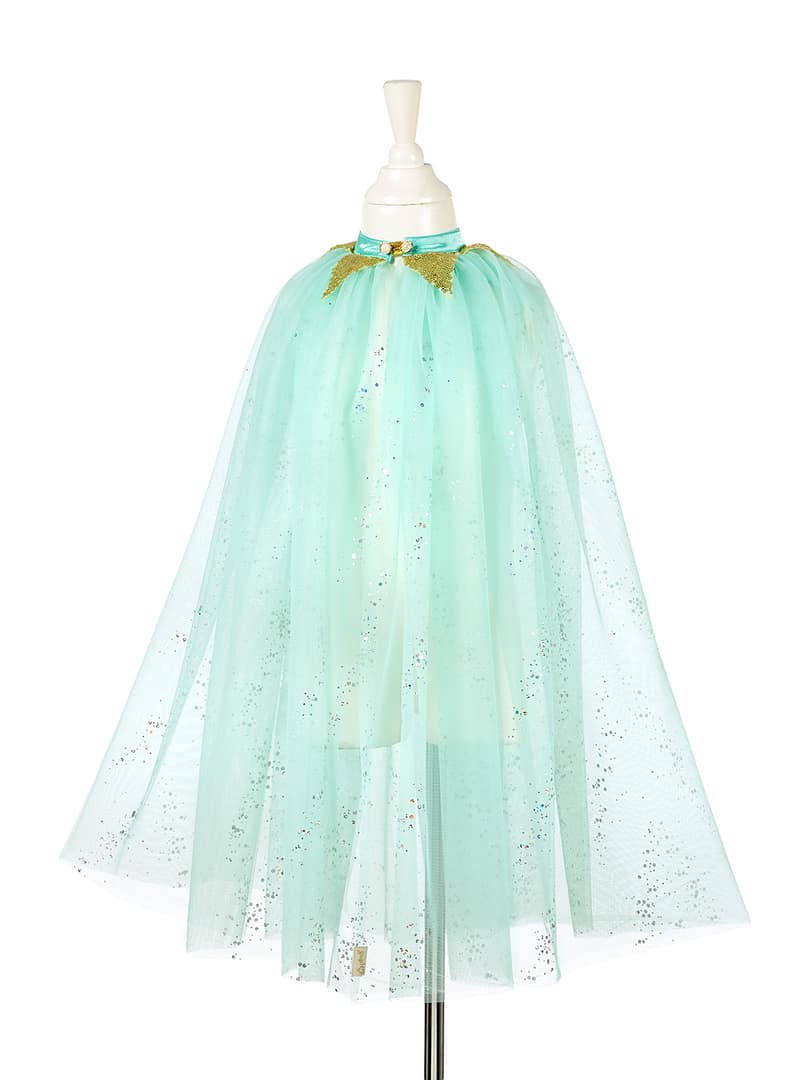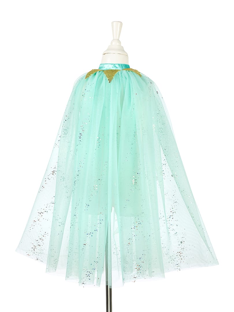 De Souza Josiana cape is gemaakt van mintgroene tule met een sprankeling van glitters, perfect voor elke kleine prinses! Een bijzonder detail is de driehoekige paillettenstof in de nek van de cape, die het een extra betoverende uitstraling geeft.