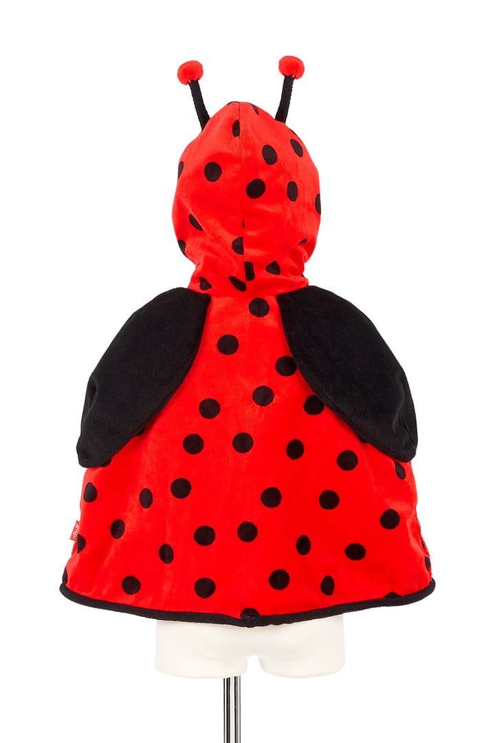 Dit prachtige Souza kostuum maakt je kleintje helemaal klaar voor een magisch avontuur als een rood lieveheersbeestje! Het kostuum wordt eenvoudig aangetrokken als een cape en sluit aan de voorkant met klittenband. De smalle zwarte rand rond de opening en de vaste muts maken het compleet.