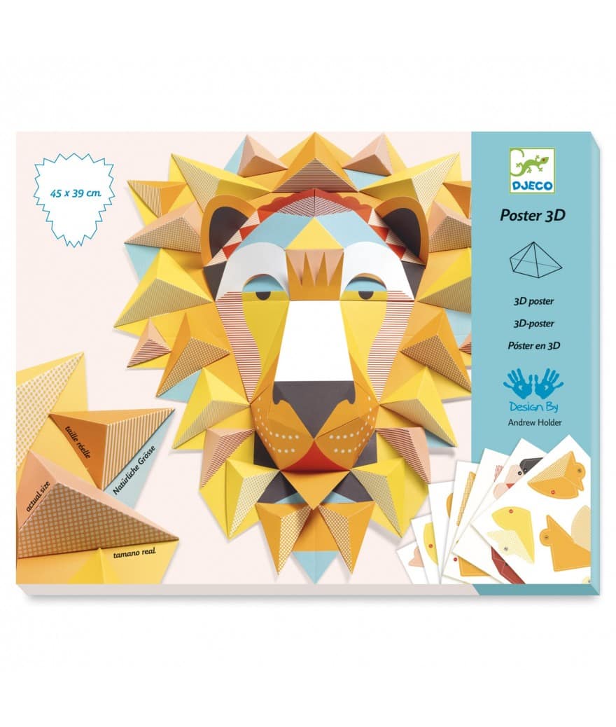 Een doos die vouwen en collage combineert om een grote 3D “leeuw”-poster te maken om op te hangen! De kinderen maken de voorgestanste stukken papier los, vouwen deze en zetten deze aan de hand van het ingenieuze systeem met inkepingen en lijm in elkaar. Zo maken ze een fantastische poster met 3D-effect. Wat zijn ze trots dat ze deze mooie en kleurrijke leeuwentrofee met hun eigen handen hebben gemaakt! Nu hoef je hem alleen nog op te hangen.
