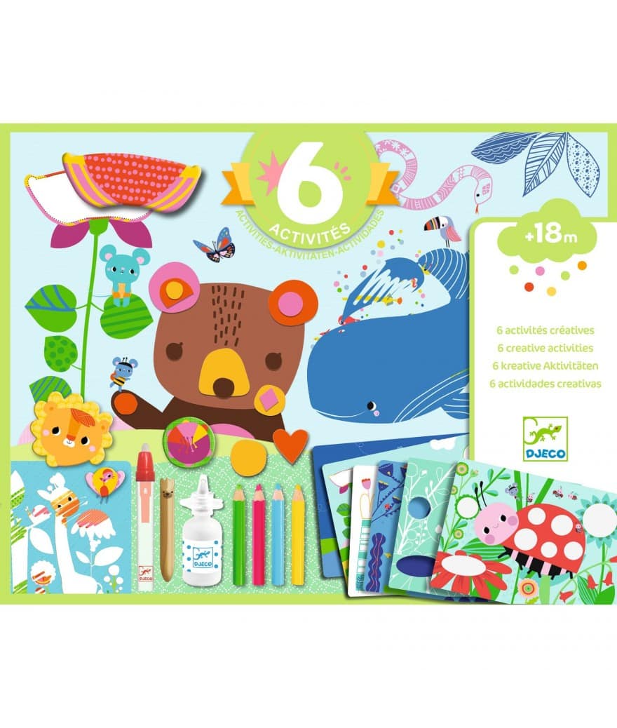 Dit is een uitgebreide doos met 6 creatieve activiteiten en andere bezigheden voor kinderen vanaf 18 maanden. Plakken, kleuren, krassen… Voor ieder wat wils! Urenlange manuele activiteiten om verschillende creatieve technieken te ontdekken. Alle accessoires zijn aanwezig, zodat het kind elke activiteit kan uitvoeren volgens zijn/haar eigen wensen en nieuwsgierigheid. Het boekje waarin elke activiteit stap voor stap wordt beschreven, helpt het kind bij zijn/haar creatieve bezigheden.