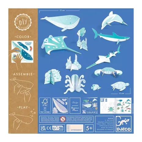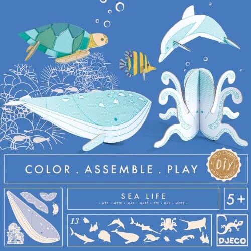 Djeco DIY Sea life: Ontdek onze unieke creatieve set met grote kartonnen stukken, perfect voor het inkleuren en samenstellen van prachtige dieren en versieringen met als thema de oceaan. Ervaar de vreugde van kleuren, gecombineerd met de boeiende activiteit van het bouwen in 3D. Beleef urenlang plezier met deze set, ideaal voor creatie en spel!