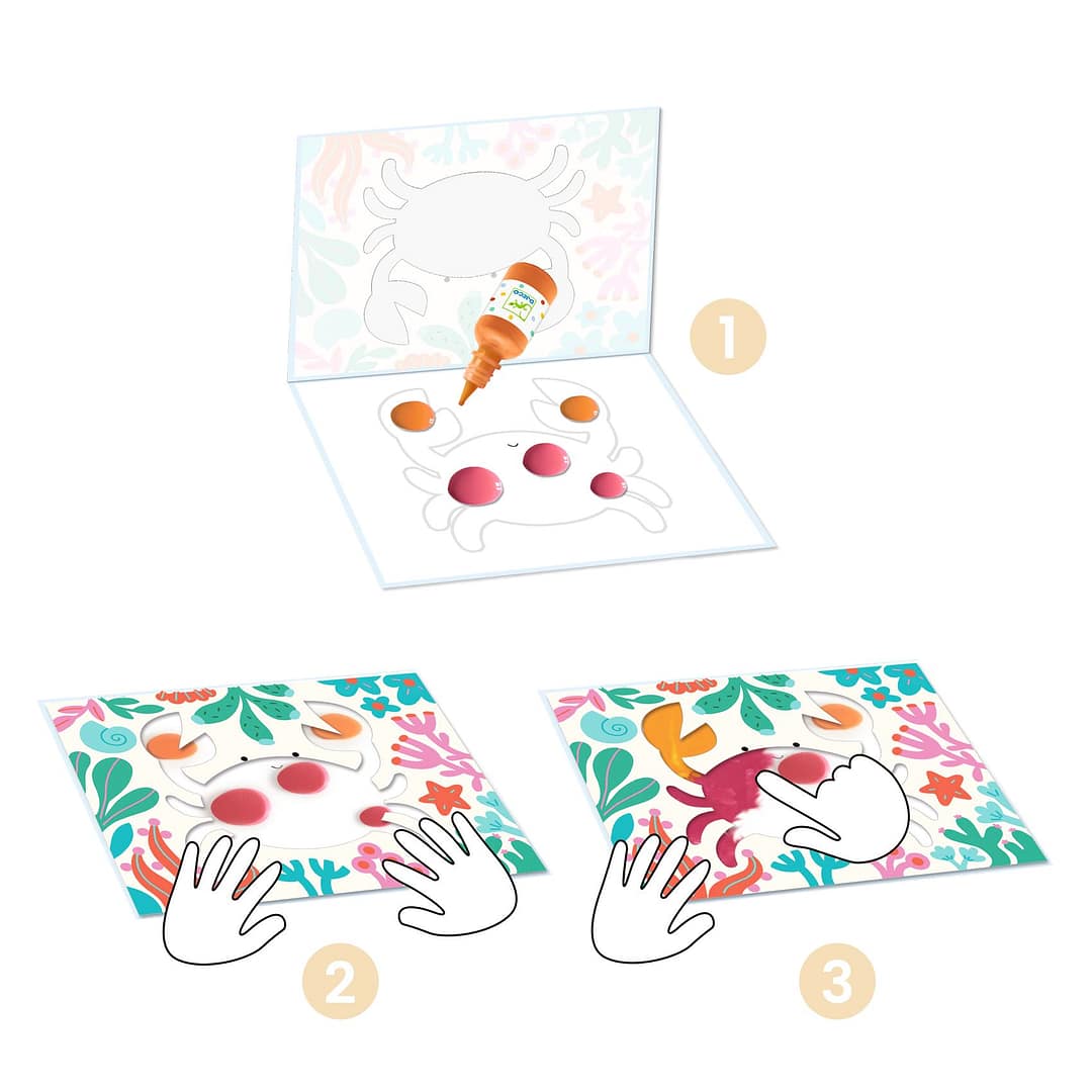 Laat je kindje verven zonder te knoeien – ideaal! Djeco – Mijn eerste verfdoos maakt kladderen ontzettend leuk voor je dreumes. Open het plastic boekje, giet de verf erin en sluit het weer. Nu kan je kindje de verf verdelen door met de vingers over het boekje te gaan, zonder de handen vuil te maken. Na het verven spoel je de zakjes eenvoudig af met water en zeep, zodat je keer op keer opnieuw kunt beginnen. Eindeloos kladderen zonder rommel!