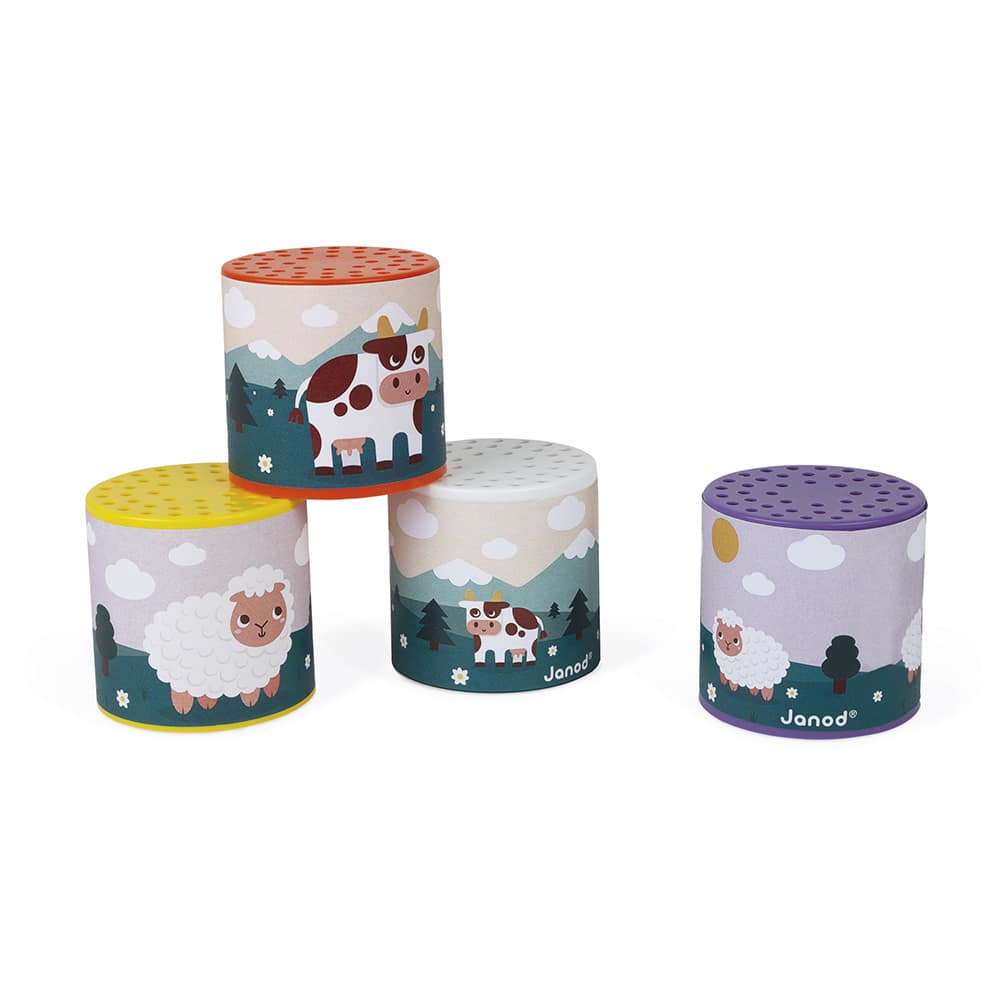 Draai het doosje ondersteboven en vervolgens opnieuw rechtop om het dierengeluid te horen. Vanaf 2 jaar.