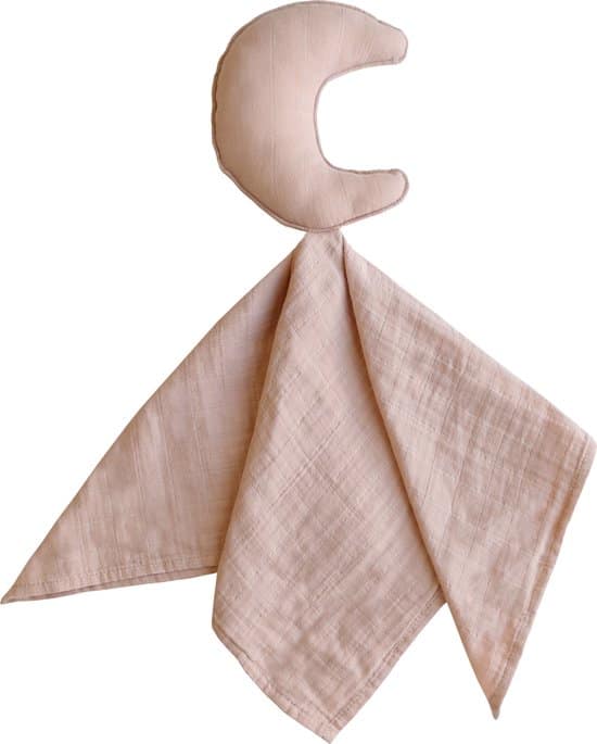 De Mushie – knuffeldoekje Lovey Blanket Moon is een schattig, knuffelzacht dekentje met een maanvormig speeltje. Het biedt comfort en geborgenheid, en stimuleert de zintuigen van je kindje op een speelse manier. Dankzij het compacte formaat neem je het doekje eenvoudig mee voor onderweg, in de kinderwagen of tijdens dutjes.