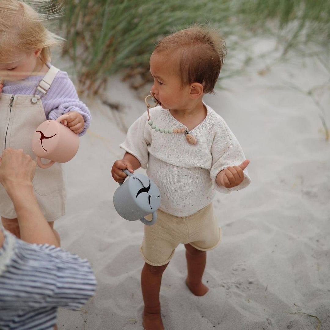 Deze praktische silicone snack beker van Mushie heeft geen deksel maar een flexibele opening. Hierdoor zijn ze knoeibestendig en kunnen kleine handjes makkelijk bij de inhoud.