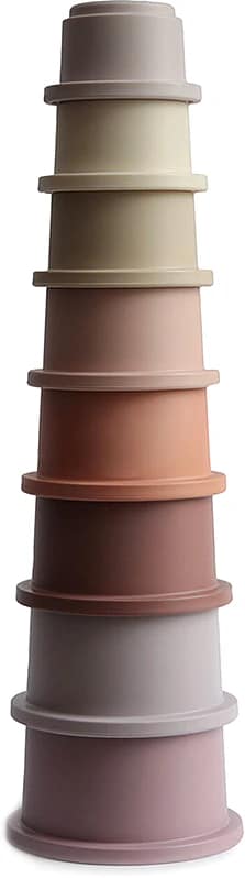 Prachtige stapeltoren ‘stacking cups’ van het Amerikaanse merk Mushie. Deze toren voor peuters bestaat uit acht stapelbekers in verschillende groottes met allemaal een anders printje aan de onderkant. Niet alleen leuk voor thuis, maar ook te gebruiken in bad of op het strand.