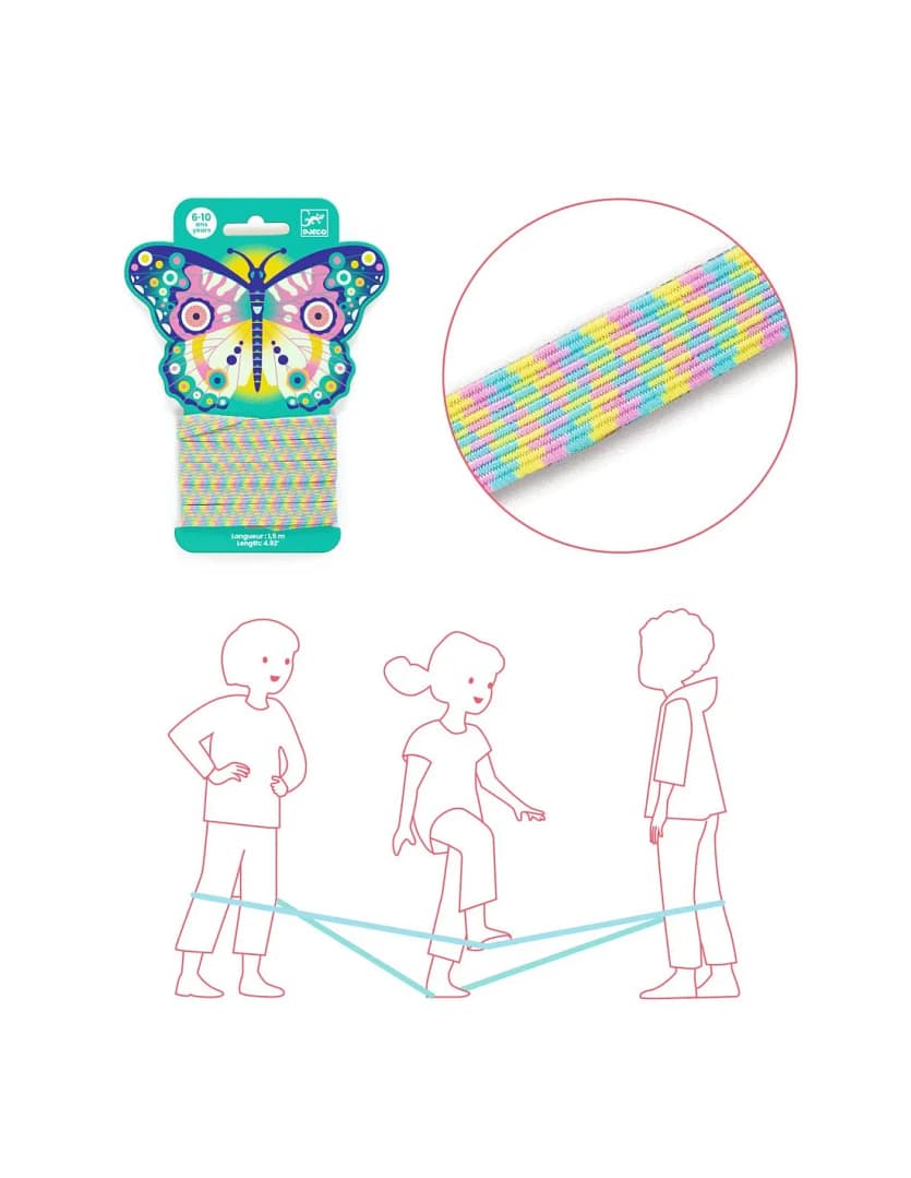 Een klassieker op het schoolplein: de speler springt in en uit het elastiek dat over de enkels van 2 andere spelers is gespannen en voert daarbij leuke figuren uit. Dit buitenspel kan ook binnen worden gespeeld: je kunt alleen oefenen door het elastiek tussen 2 stoelen te spannen. Het is een leuk spel dat concentratie, coördinatie, behendigheid en ritmegevoel ontwikkelt.
