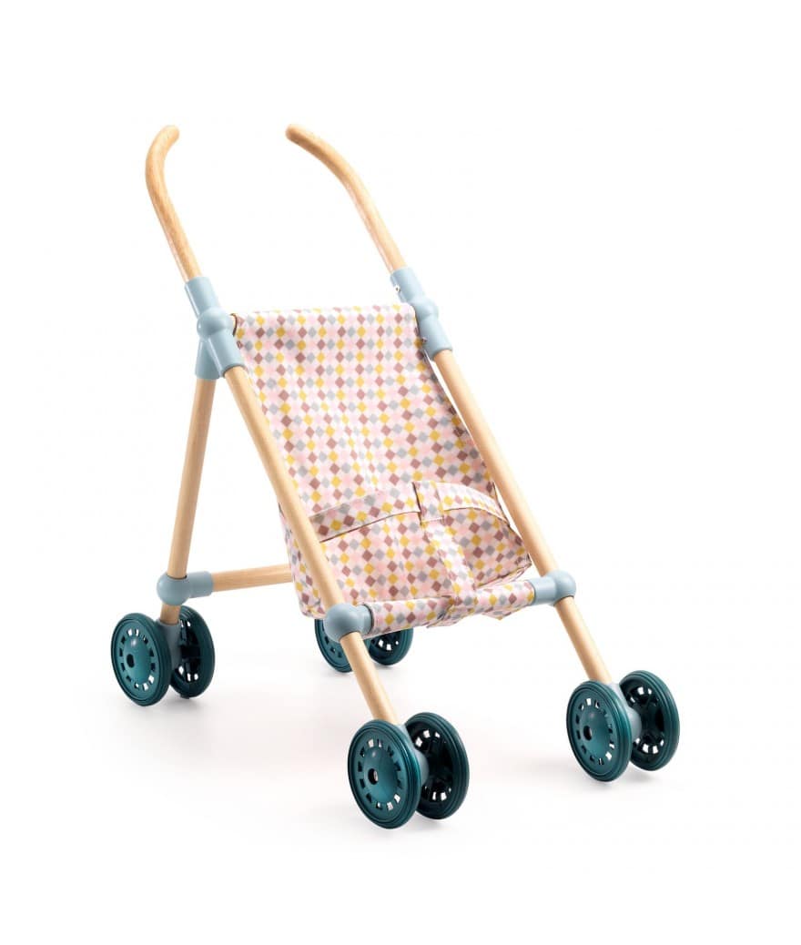 De poppenwagen is geschikt voor de Pomea poppen van Djeco en andere poppen en knuffels van 30 tot 35 cm.