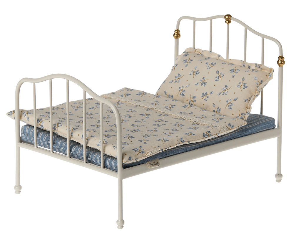 Een perfect bed voor een goede nachtrust. Het beddengoed is gemaakt van prachtige Maileg-stoffen met verschillende prints, die zorgvuldig zijn uitgekozen om de look compleet te maken. Dit bed is geschikt voor de muis mama/papa en oma/opa.