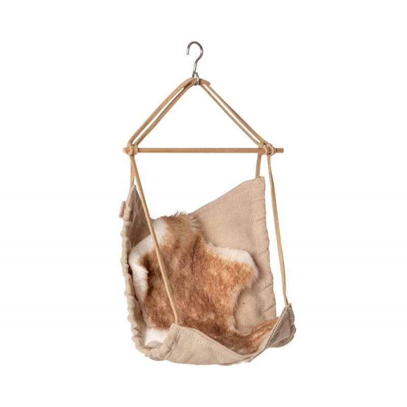 Een plek om te relaxen en rustig heen en weer te schommelen. Er zit een dekentje bij om je Maileg vriendje warm mee te houden.