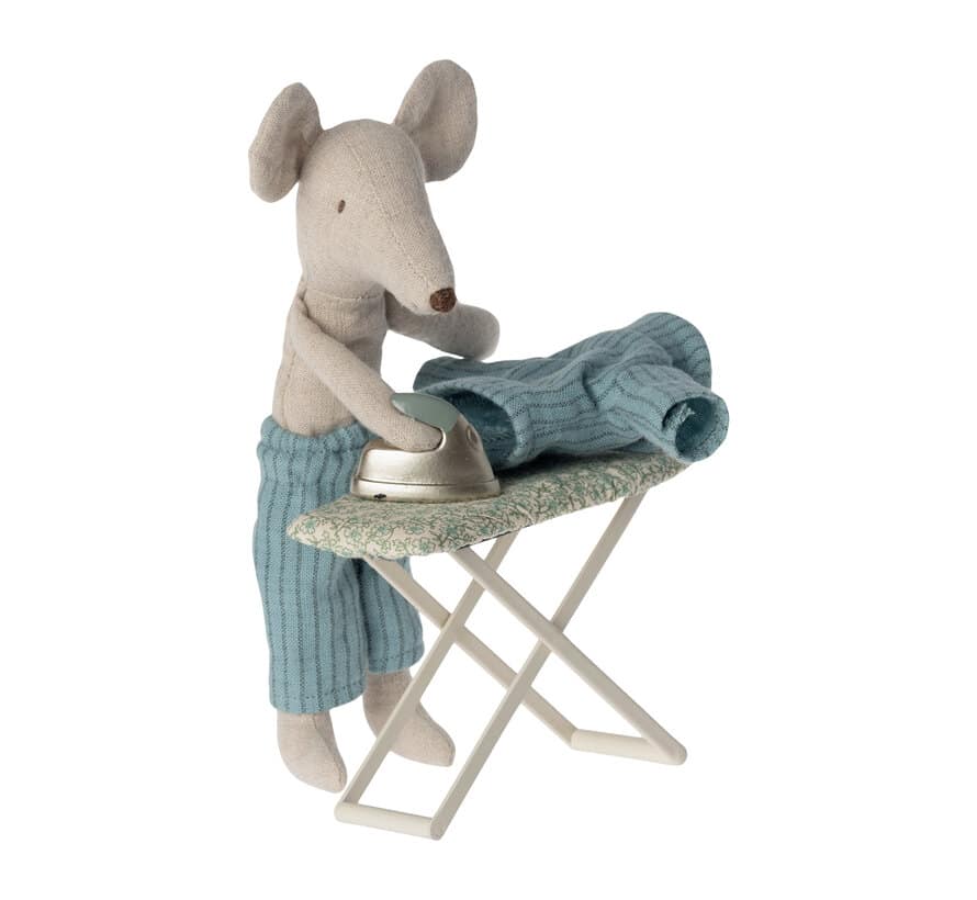 Met deze Maileg strijkplank met strijkijzer worden alle muizenkleertjes keurig netjes gestreken. Deze strijkplank is 12 cm breed en is gemakkelijk in en uit te klappen.