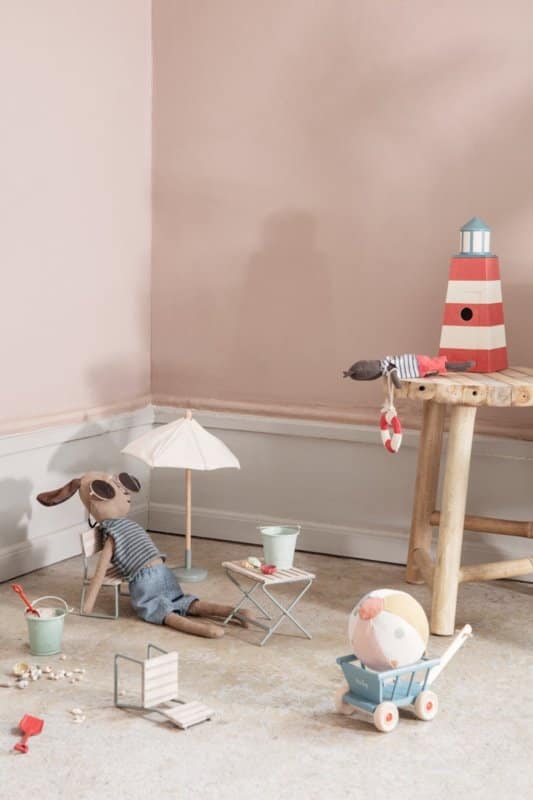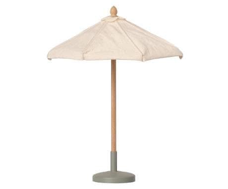 Een leuke parasol voor op het strand voor je muisjes van het Deense merk Maileg. Iedereen heeft op een zonnige dag op het strand wat tijd in de schaduw nodig. Deze kleine parasol is gemaakt van stof en het midden is van hout. De parasol past perfect bij de set van 2 strandstoelen.