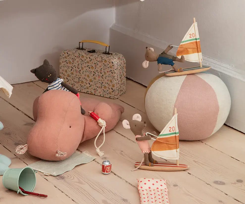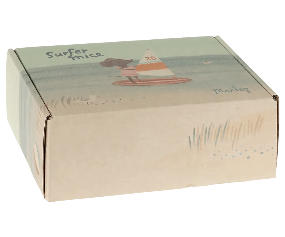Super leuke Surfer Muisje uit de Beach Mice collectie van het merk Maileg. Tijd voor vakantie! Lekker surfen en genieten van de zon, zee en strand! Een mooie aanvulling voor bij je poppenhuis.
