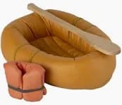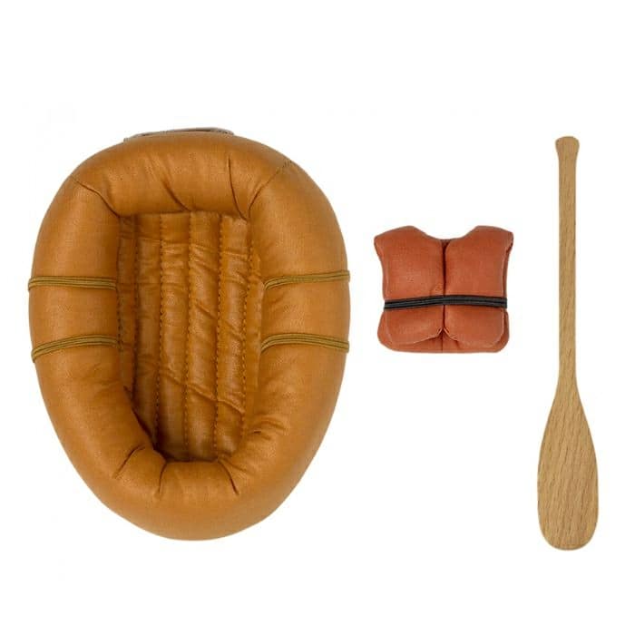 Hoe geweldig is deze rubber boat voor avontuurlijke Maileg muizen! De boot wordt geleverd met zwemvest en peddel.