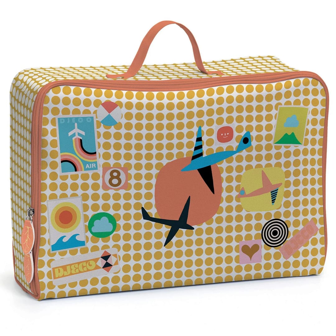 Stoere kinderkoffer met vakantie print, perfect voor logeerpartijtjes of vakanties! Gemaakt van waterafstotend gecoat katoen en groot genoeg voor slaapspullen en toiletartikelen.