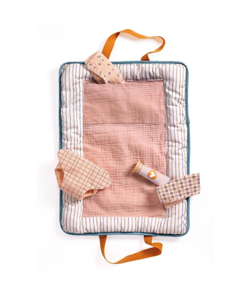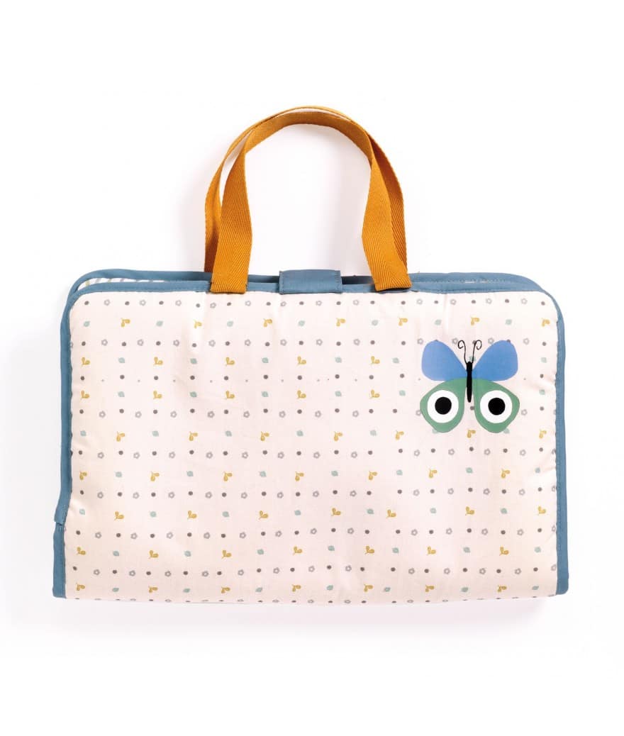 Djeco Pomea draagbare luiertas: Een draagbare luiertas om je babypop te verzorgen. Als je de tas opendoet verandert hij in een comfortabel matrasje waar je je baby op kunt leggen. Met de luier, de doekjes en de tube crème, heeft de baby schone billetjes. Een onmisbaar accessoire om overal mee naartoe te nemen!