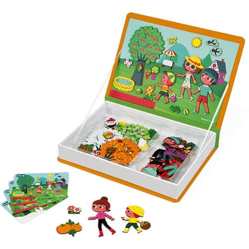 Op de magntische seizoenskaarten van een magnetibook plak je allerlei dingen. Maak de voorbeeldkaartjes na of verzin zelf een creatieve combinatie. Wat dacht je van vlinders in de winter? Of een herfst-sneeuwpop Met de 115 magneten en 4 seizoenskaarten verzin je de leukste dingen. En de handige opbergbox is natuurlijk ideaal om mee te nemen!