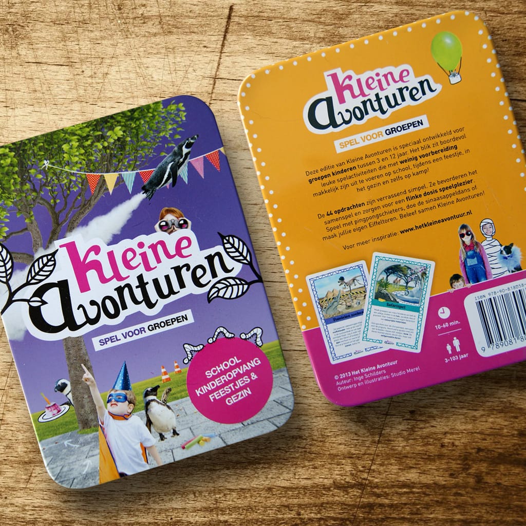 Auteur Inge Schilders. Wat is Kleine Avonturen voor Groepen? Na het succes van Kleine Avonturen voor Ouder en Kind is er nu een vervolg gegeven aan dit spel. Vanuit basisscholen uit Nederland en Belgie kregen wij het verzoek om een spel te ontwikkelen dat ook met groepen kinderen uitgevoerd kan worden. Na flink zwoegen en testen is het spel nu hier! Uitvoering met spelactiviteiten, uit te voeren op school, tijdens een feestje, in het gezin en zelfs op kamp! Het bevordert het creatief denken, het samenspel en zorgt voor een flinke dosis speelplezier! 3+